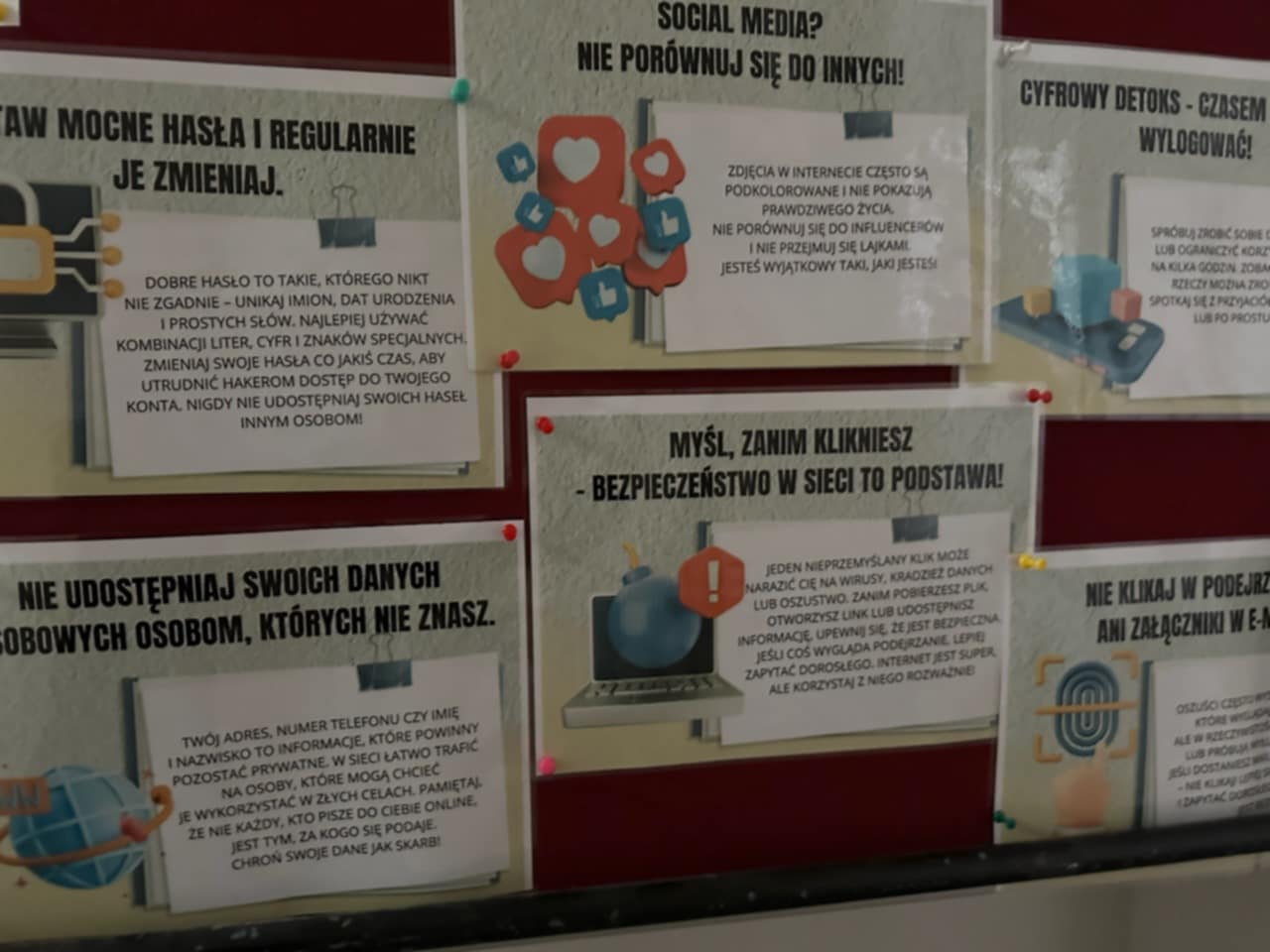 W Szkole Podstawowej nr 1 w Koninie obchodziliśmy Dzień Bezpiecznego Internetu. Z tej okazji uczniowie uczestniczyli w ciekawych i angażujących lekcjach poświęconych tematyce bezpieczeństwa w sieci. Podczas zajęć omawiano zasady odpowiedzialnego korzystania z Internetu, zagrożenia czyhające w świecie online oraz sposoby ochrony swoich danych i prywatności. Uczniowie zostali zapoznani z podstawowymi zasadami bezpieczeństwa w Internecie i dowiedzieli się, jak reagować w sytuacjach niebezpiecznych. Ważnym elementem obchodów była również gazetka tematyczna, przygotowana przez p. A. Tamborską, która w przystępny i atrakcyjny sposób przybliżała najważniejsze informacje dotyczące bezpiecznego korzystania z sieci. Obchody Dnia Bezpiecznego Internetu były wartościową lekcją, która z pewnością przyczyniła się do zwiększenia świadomości uczniów na temat zagrożeń i odpowiedzialnych zachowań w sieci.