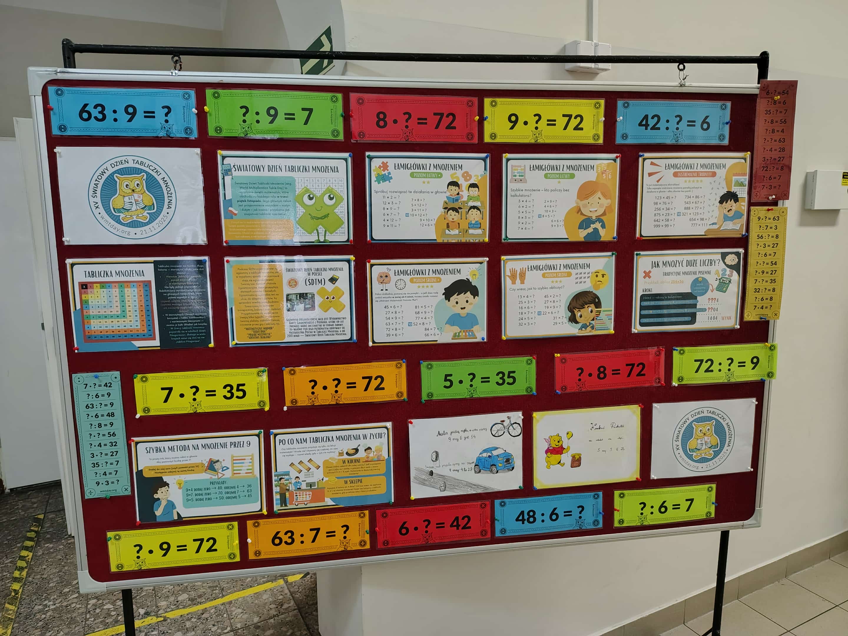 W piątek 21 listopada obchodziliśmy w naszej szkole Światowy Dzień Tabliczki Mnożenia. W tym roku była to już 15 edycja tej akcji. Na lekcjach uczniowie wykonywali różne zadania związane z tabliczką mnożenia (karty pracy, zabawy interaktywne). Uczniowie sprawdzali swoje umiejętności w ,,kole fortuny" oraz losując przykłady z tabliczki mnożenia.