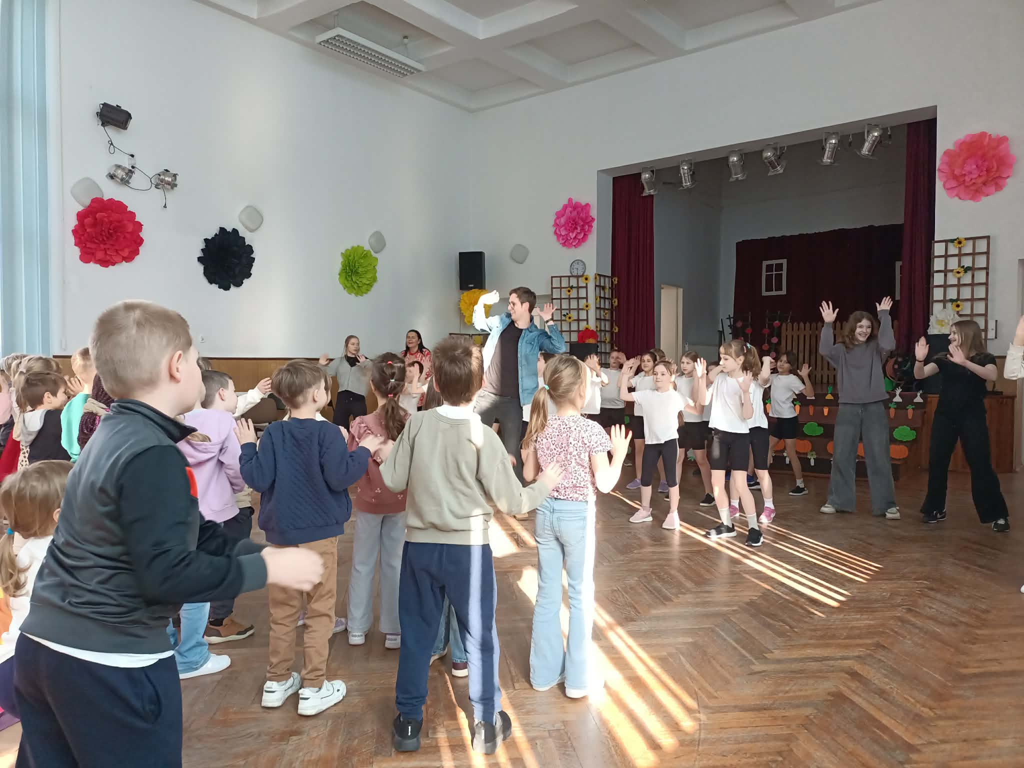 We wtorek gośćmi naszej konińskiej "Jedynki" były dzieci z Przedszkola nr 4 "Biały konik". Przedszkolaki uczestniczyły w zajęciach plastycznych w salach lekcyjnych, bawiły się i tańczyły w auli szkolnej i odkryły kilka sekretów zwiedzając naszą szkołę. Zapraszamy wszystkich ponownie!